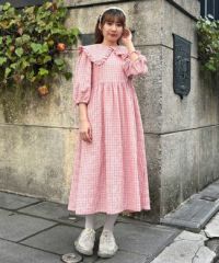 大きめのフリルカラーが目を惹くガーリーなワンピース。 衿先と袖口部分には共布のリボンがアクセントに。 程よくゆとりを持たせたサイジングにすることで可愛らしくなりすぎす 小慣れた雰囲気を演出できます。袖口部分はホールド感のあるゴム仕様で機能性もプラス。 サッカー素材でお手入れのしやすさも◎夏のお出掛けにぴったりな1枚に仕上がりました。