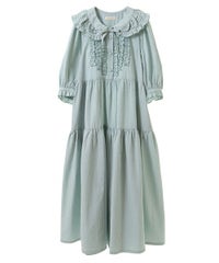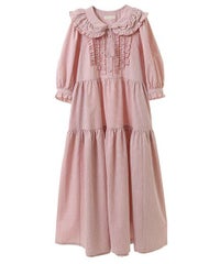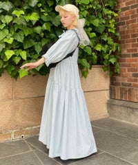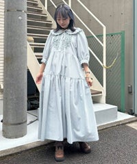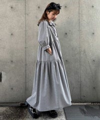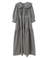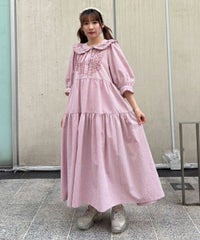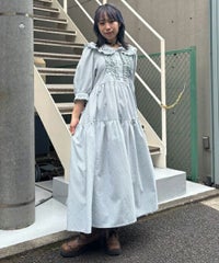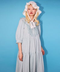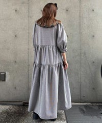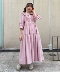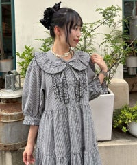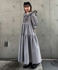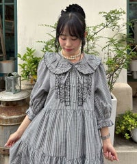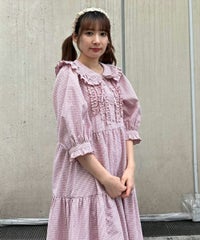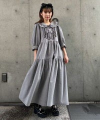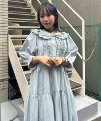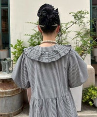 繊細なフリル・リボンディティールが目を惹くガーリーな雰囲気のワンピース。 程よくゆとりを持たせたサイジングにすることで身体のラインが出過ぎず、 小慣れ感のあるリラクシーなシルエットに仕上げました。 スカート部分はティアードデザインを取り入れ華やかさを演出。 軽やかな質感のポリエステル混のギンガムチェックを使用し 夏の装いにぴったりな1枚に仕上げました。