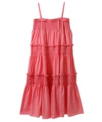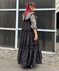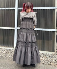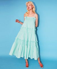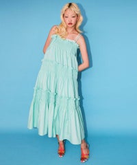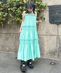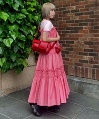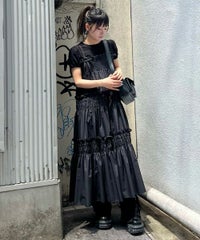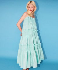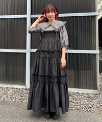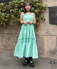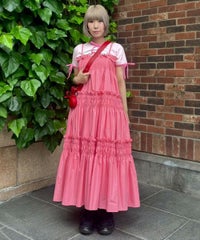 シャーリングディティールが目を惹くマキシ丈のワンピース。 シワになりにくく軽やかな質感のT/Cブロードを使用しておりお手入れのしやすさも◎ 裏地つきでインナーが透けにくいのも嬉しいポイント。 身頃部分のシャーリングは身体のラインが出過ぎないように程よくゆとりを持たせ 切り替え位置を高めに設定することでスタイルが良く見えるように仕上げました。 スカート部分はティアードを入れAラインのシルエットにすることで女性らしさを演出。 アクセントカラーに最適なミントとピンク、モードな雰囲気が漂うブラックの3色をご用意。 ブラウスやシアー素材のトップスなど組み合わせるインナー次第でシーズンレスでお楽しみいただける万能ワンピースです。