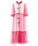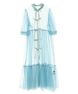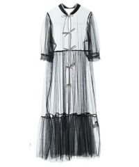 チャイナディティールを取り入れたチュールワンピース。 衿とリボン部分はポップな印象になり過ぎずぎないように 程よい光沢感のあるサテンを使用し女性らしい雰囲気を演出。 ホックで開け閉めが可能でリボンを結ばずにご着用いただけます。 袖はパフスリーブでボリュームを持たせ華やかさをプラス。 スカート部分はティアードデザインで裾広がりのシルエットで華やかに仕上げました。 Tシャツやキャミソールなどを組み合わせたレイヤードスタイルにぴったりです。