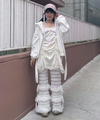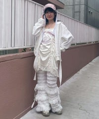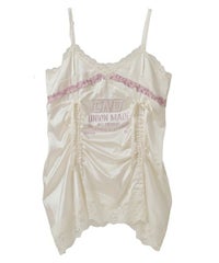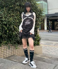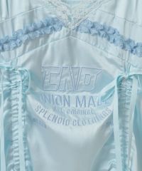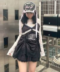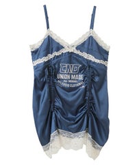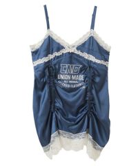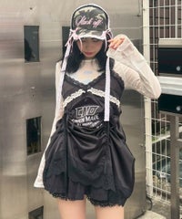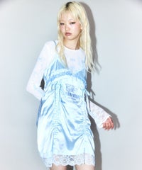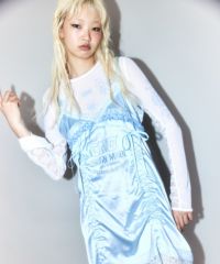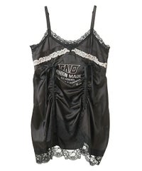 繊細なレース使い・ランジェリーディティールを デザインに落とし込んだキャミソールワンピース。 上品な光沢感があるマットサテンを使用しラグジュアリーなムードを演出。 あえてスポーティなロゴのグラフィックを刺繍で施すことで キャンディらしい遊び心をプラスしました。 肩紐とドロスト部分は調節可能でスタイリングに合わせ調節が可能。 ミニワンピースとしてはもちろん、上から透け感のあるニットを重ねたり ダメージデニム等を組み合わせてカジュアルダウンさせたりetc…。 ガーリーからカジュアルまで様々な着こなしをお楽しみいただけます。 ※濃色は汗・水分や摩擦により色移りする恐れがありますのでご注意ください ・・・・・・・・・・・・・・・・・・・・・・ ・透け感:なし ・伸縮性:なし ・生地の厚さ:薄い ・裏地:なし ・・・・・・・・・・・・・・・・・・・・・・
