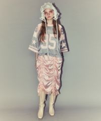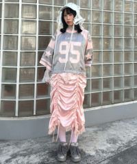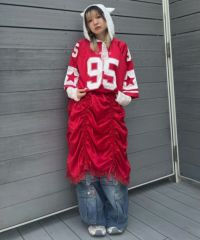 トップスの裾部分はドローコードを通しており、シルエットに変化を加えることも可能。