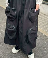 ハートや長方形の大きな立体ポケットがポイントのタフタ素材のワンピース。 フロントとサイドにはファスナーが付いており、お好みでご調整いただけます。 1枚でワンピースとしての着用はもちろん、ボトムを合わせたコーディネートもおすすめです。 夏フェスやレジャーシーンでも◎