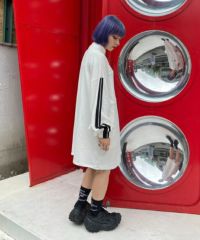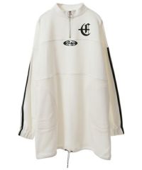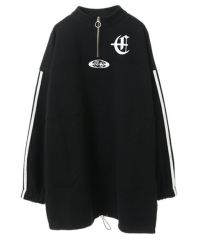 胸元にオリジナルロゴをプリントしたハーフジップワンピース。 袖に施された、太さの異なる配色のラインがスポーティな印象に。 裾のゴムは絞れる仕様になっており、お好みのシルエットで着こなしていただけます。