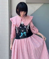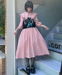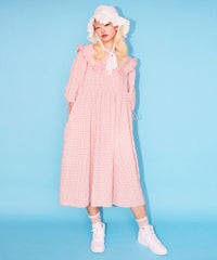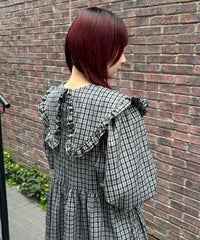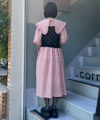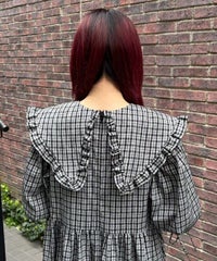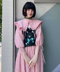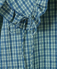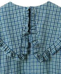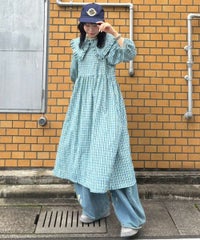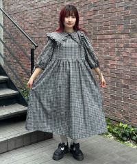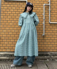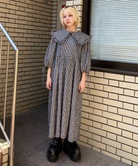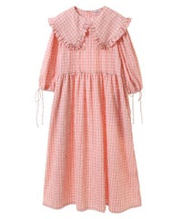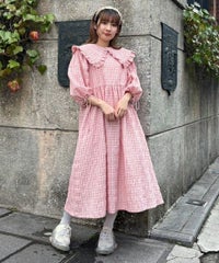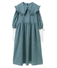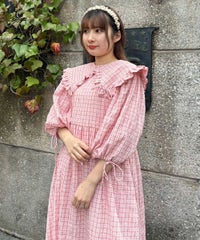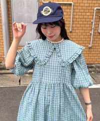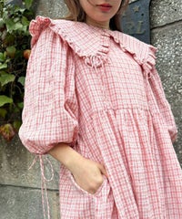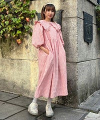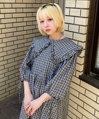大きめのフリルカラーが目を惹くガーリーなワンピース。 衿先と袖口部分には共布のリボンがアクセントに。 程よくゆとりを持たせたサイジングにすることで可愛らしくなりすぎす 小慣れた雰囲気を演出できます。袖口部分はホールド感のあるゴム仕様で機能性もプラス。 サッカー素材でお手入れのしやすさも◎夏のお出掛けにぴったりな1枚に仕上がりました。