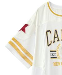 ゲームTシャツのディティールをデザインに落とし込み、サテンとメッシュ素材をドッキングさせたスポーティなワンピース。 フロントのDOGモチーフをアップリケ刺繍で表現しプリントと組み合わせることでヴィンテージライクな雰囲気を演出。 スカート部分はティアードデザインにすることでカジュアルになり過ぎず女性らしい要素をプラス。 程よくゆとりを持たせたリラクシーなシルエットで小慣れ感のある印象に。 ボトムを組み合わせたレイヤードスタイルがオススメです。 夏のお出かけにぴったりな主役級にキマるワンピースです。