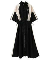 切替配色がスポーティなトラックジャージにギャザースカートをドッキングたしたロングワンピース。 ジャージ部分は軽やかで、程よい伸縮性のあるエステルポンチ素材を使用。 スカート部分は張りのあるタフタ素材を使用。たっぷりとギャザーを施し、ふんわりと広がる立体的なシルエットに。 ウエストにはドローコードを通しており、お好みのバランスにアレンジが可能です。 きゅっと絞ると女性らしいシルエットに。ゆるっと伸ばすと身体のラインを拾いにくい落ち感のあるシルエットになり、 着る人を選ばすストレスフリーな着心地です。 1枚でワンピースとしてはもちろん、ファスナーを開けて軽めのアウターとしてもご着用いただけます。 タウンユースはもちろん、ライブやレジャーシーンなどのイベントにも最適です。