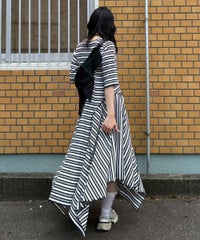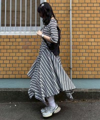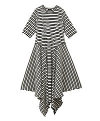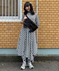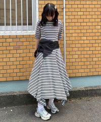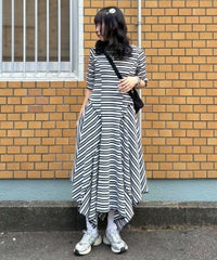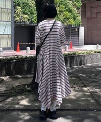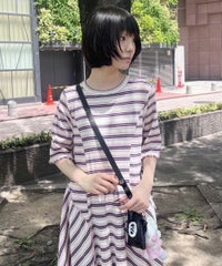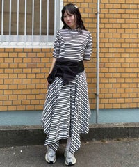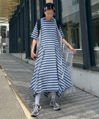 マルチカラーのボーダーテレコを使用したカットワンピース。 ゆとりを持たせたサイジングですがバストラインに切り替えを入れ 裾に向けて広がるAラインのシルエットに仕上げることで着膨れして見えず すっきりとしたバランスでご着用いただけます。 裾はイレギュラーヘムのデザインを取り入れモード感をプラス。 ワンピース単体ではもちろん、デニムやフレアパンツを組みわせた レイヤードスタイルもおすすめ。 デイリーユースからお出掛けまで幅広いシーンで活躍する夏にぴったりなワンピースです。 ・・・・・・・・・・・・・・・・・・・・・・ ・透け感:なし ・伸縮性:あり ・生地の厚さ:普通 ・裏地:なし ・・・・・・・・・・・・・・・・・・・・・・