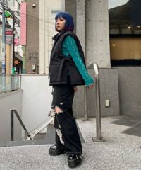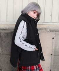 両サイドのリボンディティールが目を惹く中綿入りベスト。 中綿には3M社の高性能中綿素材シンサレートを使用。 1枚ではもちろん軽めのアウターの上からレイヤードした着こなしもオススメ。 スタイリングのアクセントにぴったりな万能アイテム。