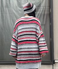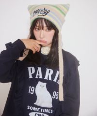 ロリポップのようなカラーリングがキュートなマルチボーダービーニー。 大きく刺繍されたガーリーなCANDYロゴと、猫耳のようなシルエットがポイント。 同カラー展開のニットトップスと合わせたコーディネートもおすすめ。