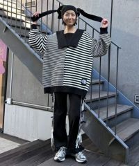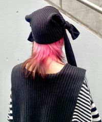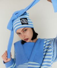 オリジナルロゴの織りネームがポイントのスクエア型ビーニー●「CND」ロゴの織りネームがポイント●両端に編み立てた紐を付けており、後ろ側でリボン状に結んだり、両サイドでランダムに結んで見たり….。色々なアレンジがお楽しみいただけます●スタイリングのアクセントに最適なピンク・水色のボーダーとベーシックにお使いいただけるブラック(無地)の3色展開●同じ織りネームを使用したセーラーニットを組み合わせた着こなしもオススメ◎●コーディネートのアクセントに最適なアイテムです。