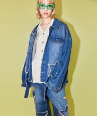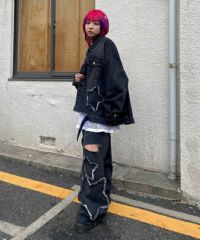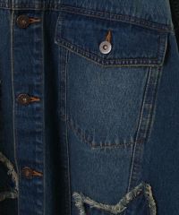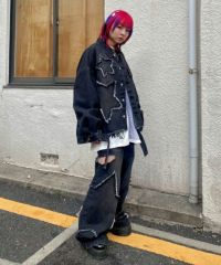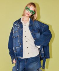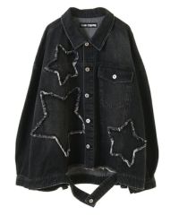 星型のパッチがポイントのリメイク風デザインのデニムジャケット。 着用した際にシルエットがキレイに見えるように10.8オンスの しっかりとした厚みのデニムを使用しています。 ヴィンテージライクな風合いの加工もポイント。 オーバーシルエットなのでユニセックスでお楽しみいただけます。 同じ素材・ディティールを使用したパンツを組み合わせて セットアップで着こなしていただくのもオススメ。 春先はもちろん、長い期間でご着用いただける1着です。