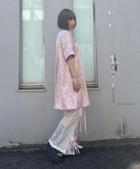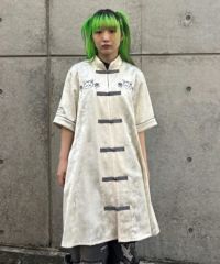 チャイナ風のディティールが目を惹くワンピース。 高級感のあるサテン生地を使用し、フロントには猫モチーフをさりげなく刺繍しました。 前を閉めてワンピースとしても、開けて羽織としてもご着用いただけます。 同シリーズのパンツと合わせたコーディネートもおすすめです。