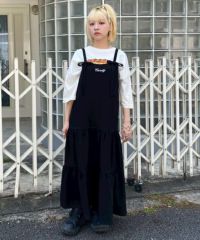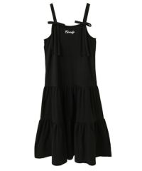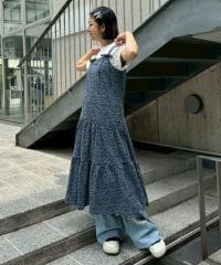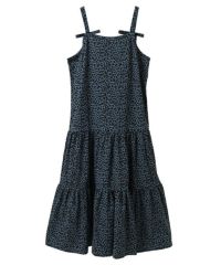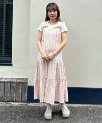 リボンディティールが目を引くキャミワンピース。 胸元には「Candy」ロゴの刺繍を入れてアクセントをプラス。 身幅に程よくゆとりを持たせ、裾部分はティアードデザインを取り入れることで 身体のラインが出過ぎず落ち感のあるシルエットに仕上げています。 1枚ではもちろん、シアー素材のタートルトップスやコンパクトサイズのトップスを 組み合わせたレイヤードスタイルもお楽しみいただけます。 色展開ごとに素材が異なり、花柄は針抜きテレコ、レオパードは天竺、 ブラックは伸縮性のあるフライスを使用しています。 リラクシーで小慣れ感のある雰囲気を演出できる1枚です。