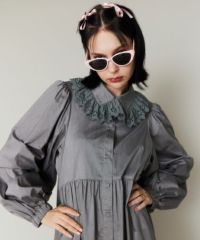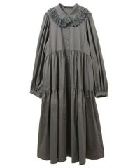 クラシカルなムードのワンピース。 衿部分にはコットンレースをあしらいアクセントをプラス。 裾にかけて広がるシルエットで女性らしい印象に仕上げています。 ポリエステル混のブロード素材を使用することで軽やかな着心地で、 シワになりにくく手入れのしやすさも◎ ワンピースとしてはもちろん、前を開けて軽いアウターとしてもご着用いただけます。