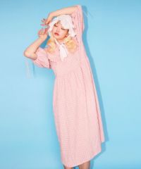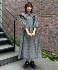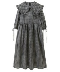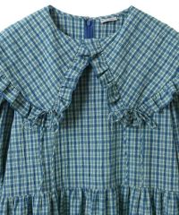 大きめのフリルカラーが目を惹くガーリーなワンピース。 衿先と袖口部分には共布のリボンがアクセントに。 程よくゆとりを持たせたサイジングにすることで可愛らしくなりすぎす 小慣れた雰囲気を演出できます。袖口部分はホールド感のあるゴム仕様で機能性もプラス。 サッカー素材でお手入れのしやすさも◎夏のお出掛けにぴったりな1枚に仕上がりました。