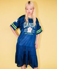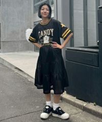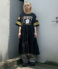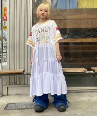 ゲームTシャツのディティールをデザインに落とし込み、サテンとメッシュ素材をドッキングさせたスポーティなワンピース。 フロントのDOGモチーフをアップリケ刺繍で表現しプリントと組み合わせることでヴィンテージライクな雰囲気を演出。 スカート部分はティアードデザインにすることでカジュアルになり過ぎず女性らしい要素をプラス。 程よくゆとりを持たせたリラクシーなシルエットで小慣れ感のある印象に。 ボトムを組み合わせたレイヤードスタイルがオススメです。 夏のお出かけにぴったりな主役級にキマるワンピースです。