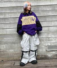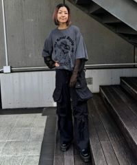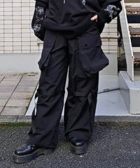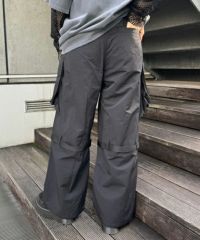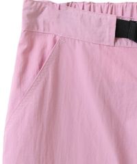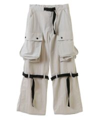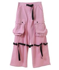 サイドの大きな立体ポケットがインパクト大なナイロンカーゴパンツ。 テープやバックルなどのパーツは黒で統一し、ストリートな印象に。 ウエスト部分はゴムを使用し履き心地も抜群。 パーカーやスウェットなど、ダボっとしたアイテムを合わせるのはもちろん コンパクトTやキャミソールなどあえてガーリーなアイテムを合わせるのも◎