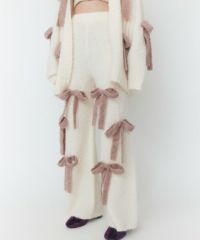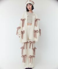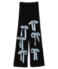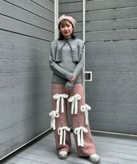 ニット素材のリボンを散りばめたニットパンツ。 ボディのカラー展開によってリボンのカラーリングが異なります。 どんな体型の方にも合う、ストンとしたストレートなシルエット。 同シリーズのカーディガン、ビーニーとのコーディネートもおすすめです。