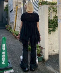 サイドのラインにリボンを施しフェミニンさをプラス。
