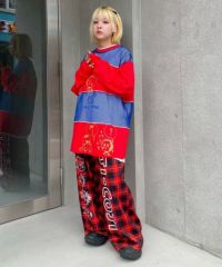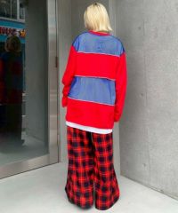 オリジナルのチェック柄をエステルポンチにプリントしたトラックパンツ。 程よい肉感のエステルポンチ素材を使用し軽やかな着心地に仕上げています。 右側にはコジコジと仲間たち、左側にはCOJI-COJIロゴをプリント。 ベルトの内側にはスピンドルを通しておりサイズ調整が可能。 後ろ側にパッチポケット付きで機能性も◎ キャンディらしいタータンチェック柄とベーシックにご着用いただけるブラックの2色をご用意。 同じ素材を使用したトラックパンツを組み合わせてセットアップ風の着こなしもオススメ☆ タウンユースはもちろんルームウェアにも最適なアイテムです。