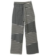 2種類のボーダーを組み合わせたリメイク風のディティールが目を惹くイージーパンツ。 程よい薄さの天竺素材を使用することで軽やかな履き心地を実現。 脚のラインが出過ぎない程よいワイドなシルエットでスタイルアップ効果も期待できます。 オーバーシルエット〜コンパクトなポップスまで様々なトップスとの相性も◎ シーズンレスでご着用いただける万能アイテムです。