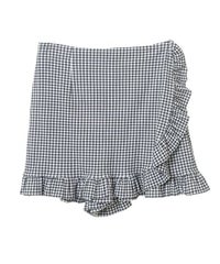ギンガムチェック柄の柔らかなリブ素材を使用したショートパンツ。 ショートパンツの上にフリル付きのフラップを重ね、ミニスカートのようなシルエットに。 同素材を使用したトップスとセットアップでの着こなしもおすすめです◎ ・・・・・・・・・・・・・・・・・・・・・・ ・透け感:なし ・伸縮性:なし ・生地の厚さ:普通 ・裏地:なし ・・・・・・・・・・・・・・・・・・・・・・