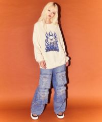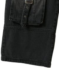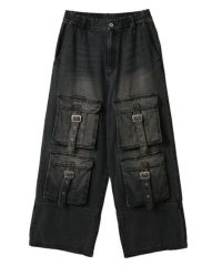 フロントに付けたベルト付きの大きめのフラップポケットがインパクト大なデニムパンツ。 両サイドにスラッシュポケット・バックにパッチポケットを付けており機能性も◎ 程よいワイドなシルエットで小慣れ感を演出。ウエスト部分はゴム仕様でリラクシーな履き心地に。 内側にドローコードを通しておりサイズ調節が可能。 厚みのある10.3オンスのデニムを使用しておりシーズンレスでご着用いただけます。 ストリートスタイル はもちろん、モードなスタイリングにもぴったりです。 ・・・・・・・・・・・・・・・・・・・・・・ ・透け感:なし ・伸縮性:なし ・生地の厚さ:普通 ・裏地:なし ・・・・・・・・・・・・・・・・・・・・・・