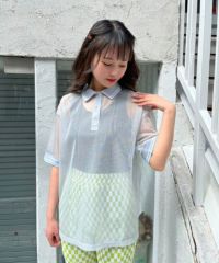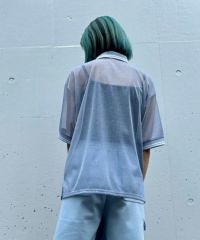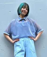 【商品詳細】メタリック感のあるシアー素材を使用したポロトップス。 袖口と衿のリブはオリジナルで編み立てたリブを使用。 オーバーサイズすぎないサイズ感でこなれ感を演出。 グラフィックTシャツや柄物のトップスとのレイヤードはもちろん キャミソール等をインナーにして肌見せするスタイリングもオススメです。