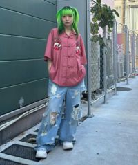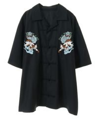オリエンタルな雰囲気のキャットモチーフの刺繍を入れたチャイナシャツ。 シワになりにくいT/Rツイル素材を使用しておりお手入れのしやすさも◎ 程よいオーバーシルエットでユニセックスでご着用いただけます。 同じグラフィックを使用したパンツを組み合わせて セットアップで着こなしていただくこともオススメです。 ベーシックにご着用いただけるアイボリーとブラック、 スタイリングのアクセントに最適なピンクの3色をご用意。 ストリートな着こなしにぴったりな1枚です。