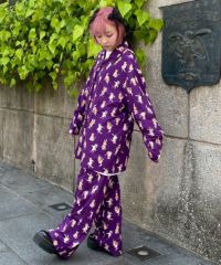 鳥獣戯画タッチで描かれたキャットモチーフの 総柄がインパクト大なチャイナシャツ。 様々なポーズや表情のキャットモチーフにもご注目。 オーバーシルエットでユニセックスでお楽しみいただけます。 シワになりにくくサラッとした軽やかなポリエステル素材を使用しており着心地も◎ トップスとしてはもちろん、前を開けて軽めのアウターとしてもご着用いただけます。 同シリーズのボトムとの組み合わせはもちろん、 ダメージデニムやトラックパンツを組み合わせたルーズな着こなしもオススメです。 主役級にキマる1枚です。 ・・・・・・・・・・・・・・・・・・・・・・ ・透け感:なし ・伸縮性:なし ・生地の厚さ:普通 ・裏地:なし ・・・・・・・・・・・・・・・・・・・・・・
