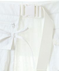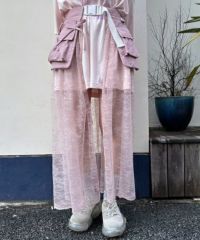 ナイロンタフタのベースに、チュールレースを合わせたベルト仕様の巻きスカート。 リボンやレースをあしらった立体的なポケットがポイント◎ スカートやパンツのレイヤードにも、ショートパンツを合わせてスカートとしても 様々なコーディネートがお楽しみいただけます。
