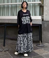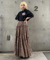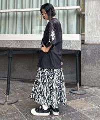 薄手のポリエステル素材を使用したティアードスカート。 斜めに入れたティアードデザインでアクセントをプラス。 ウエスト部分はゴム仕様でリラクシーな履き心地に仕上げました。 スタイリングのアクセントにぴったりなゼブラ柄とレオパード柄をご用意。 Tシャツはもちろん、開襟シャツやキャミソールなどのトップスとも相性◎ ストリートスタイルにぴったりな1枚です。