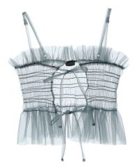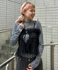 チュール素材を使用したキャミソール。 ランジェリーライクな雰囲気で女性らしい印象に。 前後でご着用可能な仕様でになっています。 ガーリーなスタイリングにはもちろん、ストリートなスタイリングに 組み合わせて小慣れ感のある着こなしもオススメです。