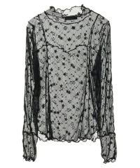 伸縮性のある星柄のストレッチチュールを使用したシースルートップス。 スタイリッシュなハイネックデザイン。 身頃のランジェリーライクなメロー切り替えで女性らしさをプラス。 程よくタイトなシルエットで1枚ではもちろん、レイヤードアイテムとしても最適。 春のアクセントカラーに最適なピンク、 ジャンルレスで活躍するオフホワイト・ブラックの3色をご用意。 スタイリングに一捻り加えたい時にぴったりです。