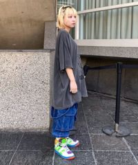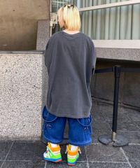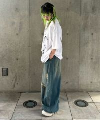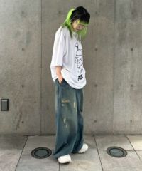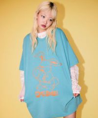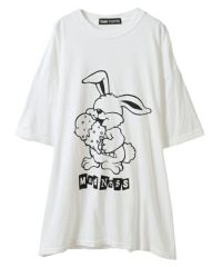 軽やかな厚みの17/-天竺を使用しており着心地も◎ パンキッシュなバニーモチーフのグラフィックにもご注目。 タウンユースはもちろん、レジャーシーンにも最適。 夏のお出かけ・イベントにぴったりな1枚です。 ※ピグメント加工の特性上、着丈や袖丈などに個体差が生じます。