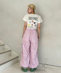 PEPEのぬいぐるみやフルーツetc…のフォトモチーフを フライヤー風にアレンジしたグラフィックを背面にプリントしたTシャツ。 フロント部分にはロゴをワンポイントでプリントしており着やすさも◎ スタンダードなシルエットのTシャツはサイズも選べ、オールシーズン活躍する定番アイテム。 今夏より新たにSサイズが登場!S、M、Lの3サイズ展開。