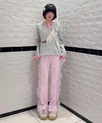 好評だったMEOW RIBBON TOPSのカラーリングを変え、ロンTで登場! 袖と胸元の開き部分はリボン結びにでき、コーディネートのアクセントに。 ボトムを選ばないシンプルですっきりとしたサイズ感です。