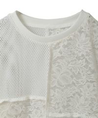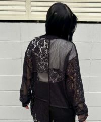 細かめのメッシュとレースを組み合わせたトップス。 切り替えのリメイク風のディティールもポイント。 程よいオーバーシルエットでトップスとしてはもちろん、 Tシャツのインナーに組み合わせたレイヤードスタイルにも最適。 スポーティーなアイテムと組み合わせた着こなしはもちろん、 キレイめアイテムを組み合わせてスタイリッシュな着こなしもオススメ。 ストリート〜モードまで幅広い着こなしをお楽しみいただけます。