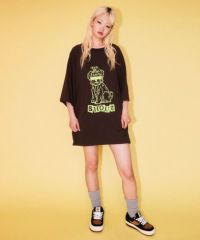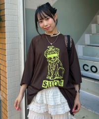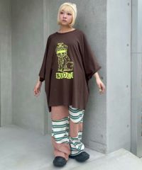 パンキッシュなドッグモチーフのグラフィックがインパクト大なラグラントップス。 程よい肉感と軽やかさのある20/-天竺を使用しており着心地も◎ オーバシルエットなサイズ感でユニセックスでご着用いただけます。 トップスとしてはもちろん、1枚でワンピース風の着こなしもオススメ。 ストリートスタイルにぴったりなアイテムです。
