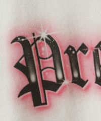 強めなガーリーロゴのTシャツ ●ロゴプリントの上にエアブラシでラメを振りかけています ●26/-天竺生地を使用したオリジナルボディ ●やわらかいコットン100%の生地を使用し着心地も抜群 ● M~XLとサイズレンジが幅広く、お好みのサイズ感を選んで着用できます ●身体のラインを拾いにくいややオーバーサイズなシルエット ●ユニセックスで着こなしが楽しめるデザイン