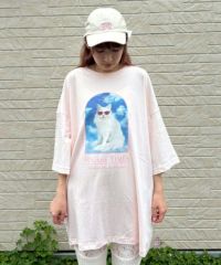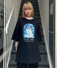 アイウェアをつけたおすましキャットのフォトプリントがキュートなグラフィックのBIG BIG Tシャツ ●26/-天竺生地を使用したオリジナルボディ ●やわらかいコットン100%の生地を使用し着心地も抜群 ●ヒップラインも隠れる安心感のある丈 ●ゆったりとルーズに着られるオーバーサイズシルエット ●ユニセックスで着こなしが楽しめるデザイン ●背の低い方が着用した場合、ワンピースとしてもご着用いただけます