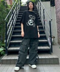 アナーキーマークをハグしているパンキッシュなくまのぬいぐるみのグラフィックのBIG Tシャツ ●26/-天竺生地を使用したオリジナルボディ ●やわらかいコットン100%の生地を使用し着心地も抜群 ●ヒップラインも隠れる安心感のある丈 ●様々な着こなしに対応できる適度なビッグシルエット ●ユニセックスで着こなしが楽しめるデザイン