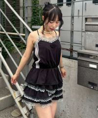 肌触りの良いエステルポンチ素材を使用した、着心地抜群なキャミソール。 胸元のチュールレースと、共地で作られたバラモチーフがポイント。 肩紐は調節可能で、お好みの長さで着用いただけます。 同素材を使用したショートパンツとのコーディネートもおすすめです◎ ※濃色は汗・水分や摩擦により色移りする恐れがありますのでご注意ください ・・・・・・・・・・・・・・・・・・・・・・ ・透け感:なし ・伸縮性:あり ・生地の厚さ:やや薄手 ・裏地:なし ・・・・・・・・・・・・・・・・・・・・・・