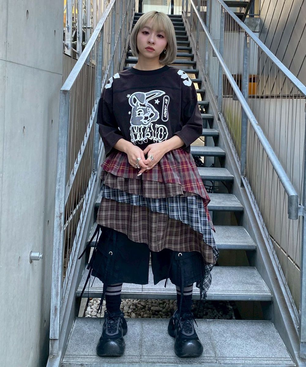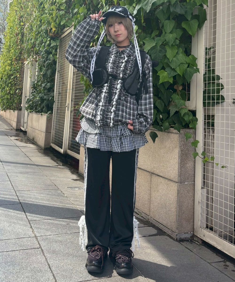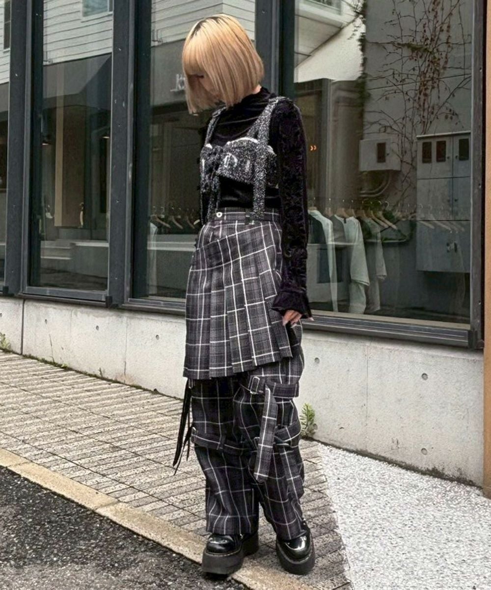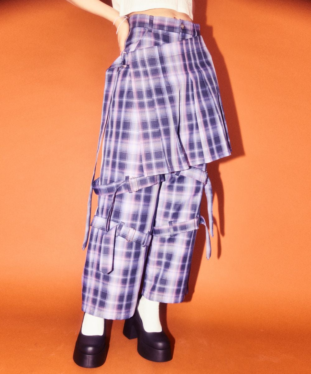 GINGHAM CHECK SKIRT LAYERED PANTS