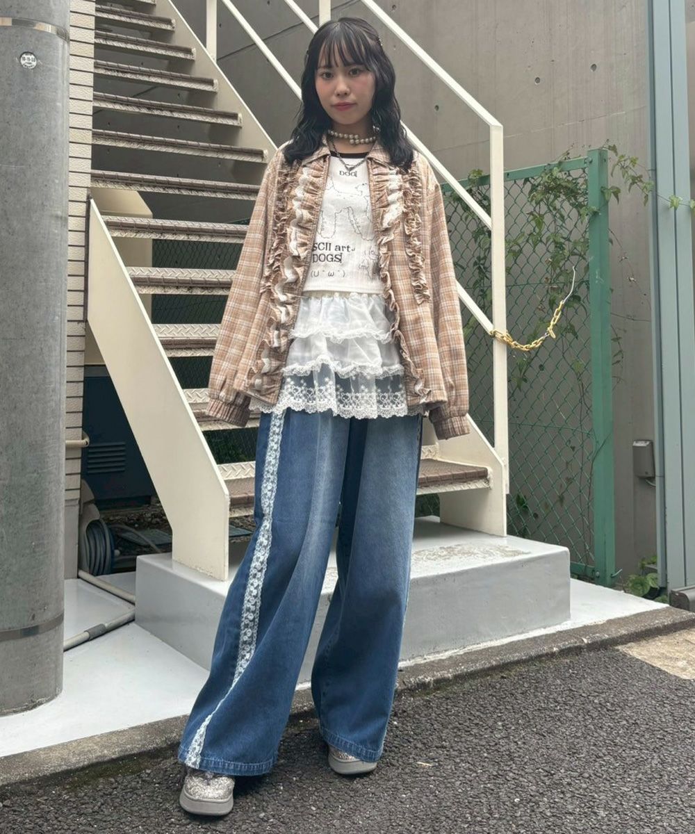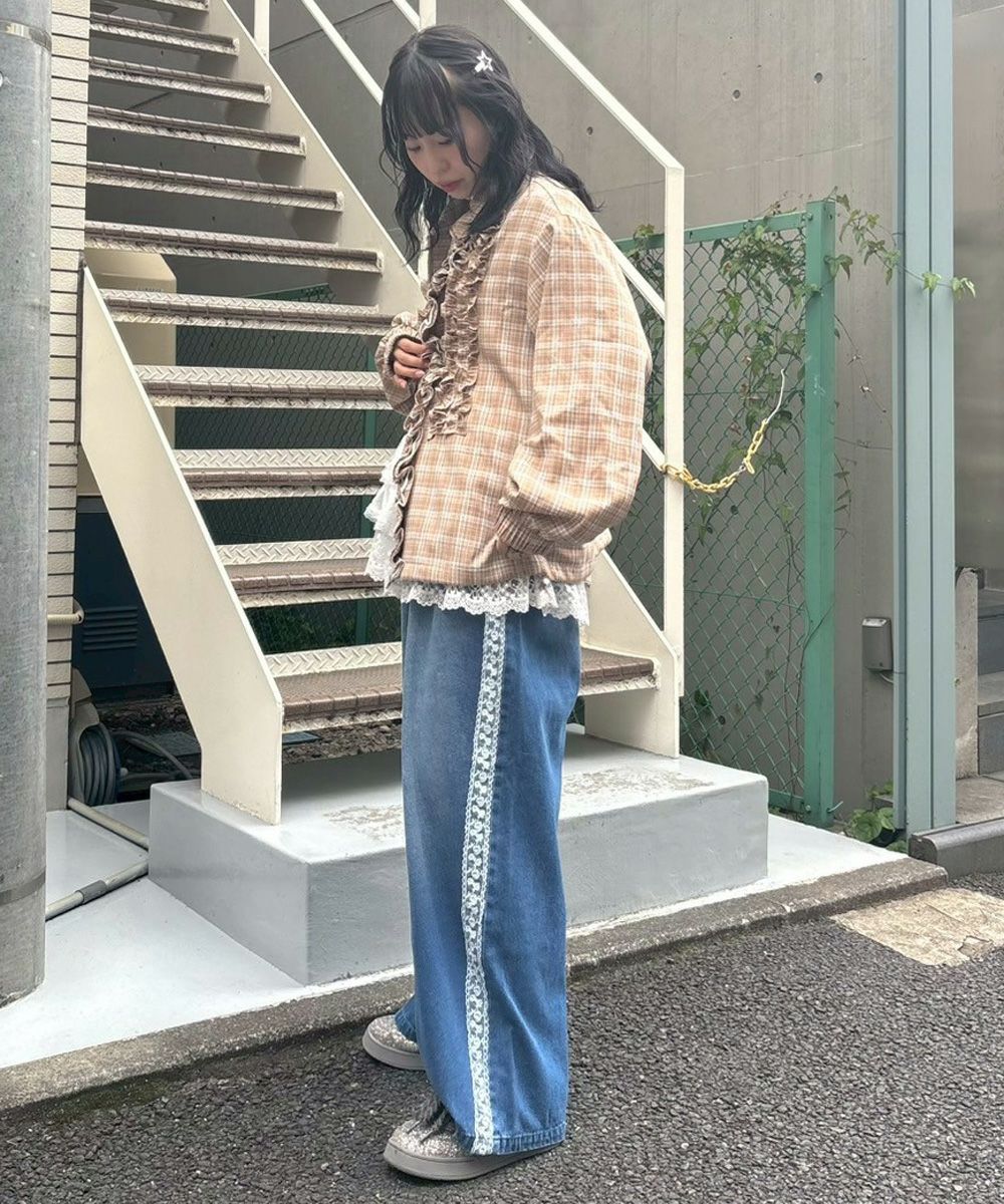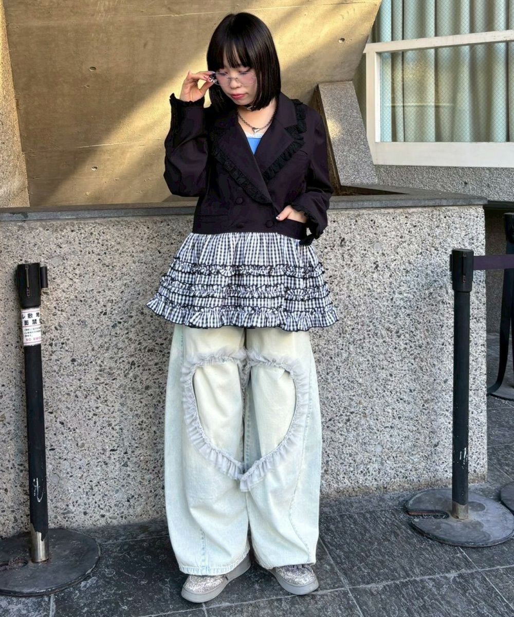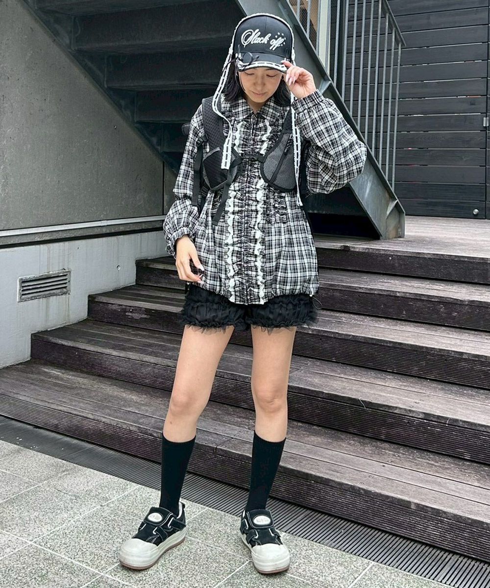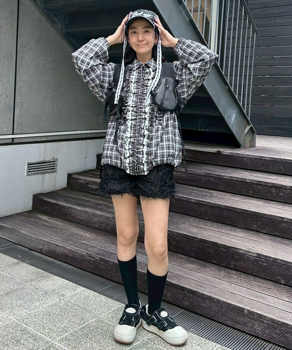 GINGHAM CHECK SKIRT LAYERED PANTS