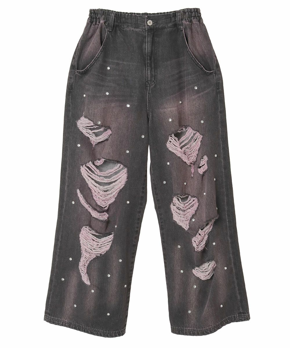 MULTI WAY DAMAGE LAYERED DENIM PANTS