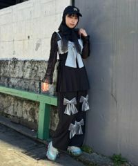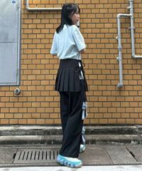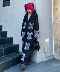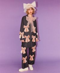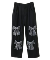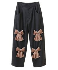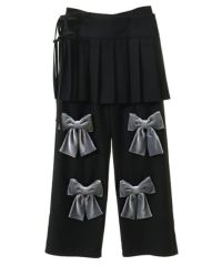 ベロア素材のぽってりしたリボンがキュートなパンツ。 レイヤードしている巻きスカートは取り外しが可能◎ 他のアイテムに合わせていただいたりと、お好みでご着用いただけます。 パンツのウエスト部分はゴムを使用し履き心地も抜群。 大人ガーリーなグレーと、使いやすいブラックの2色展開。 同シリーズのジャケットと合わせたコーディネートもおすすめです。