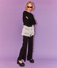 適度な肉感で1枚で着用しやすい、しなやかな肌触りのT/Rテレコ素材を使用したパンツ。 脚のラインが出過ぎない程よくゆとりを持たせたシルエットで小慣れ感を演出。 裾にはスリット入りで程よい肌見せをお楽しみいただけます。 パンツ単体ではもちろん、ワンピースやスカートに合わせたレイヤードスタイルにも最適。 ウエストはゴム仕様ではき心地抜群。 同じ素材・ディティールを使用したトップスを組み合わせていただくのもオススメ。 スタイリングに取り入れやすい、アイボリー・グレー・ブラックの3色展開。 1枚あると活躍する万能アイテムです。
