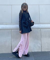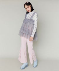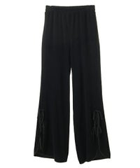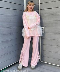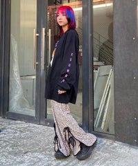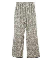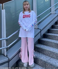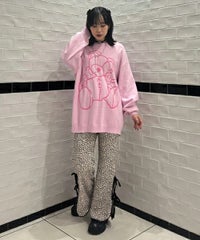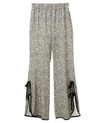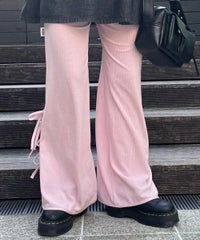 ストレッチの効いたニットコーデュロイ素材を使用したフレアパンツ。ウエスト部分はオールゴム仕様になっておりストレスフリーな履き心地に。タイトすぎない程よくゆったりとしたフレアシルエットで脚長効果も◎サイドにスリット入りで抜け感をプラス。サイドをリボンで結ぶデザインで、垂らしたリボンが着こなしのアクセントに。ベーシックにご着用いただけるピンク・ブラック(無地)とスタイリングのアクセントに最適なレオパード柄をご用意しました。合わせやすさとこなれ感が両立した、着まわし力も抜群のアイテム。
